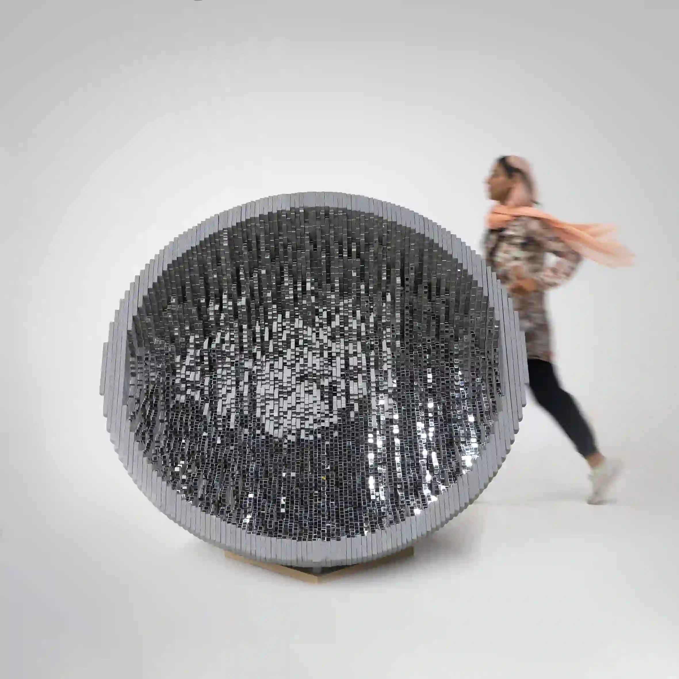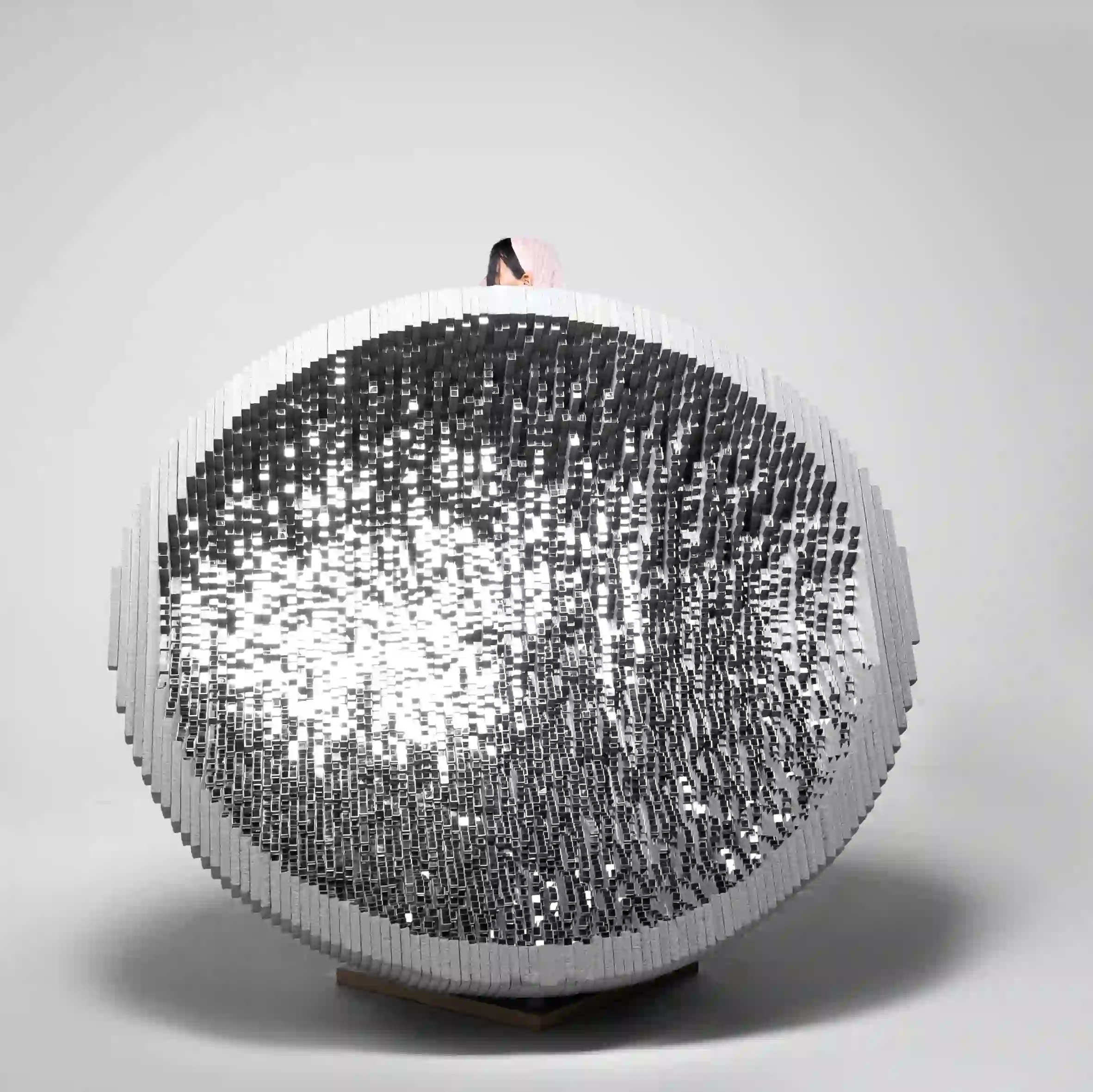 Authentic artists consolidated small and large mirror pieces to creative decorative and geometric designs. The fragmented mirror pieces reflected the surrounding environment in a regular geometric composition revealing an abstract presentation of the environment composition.